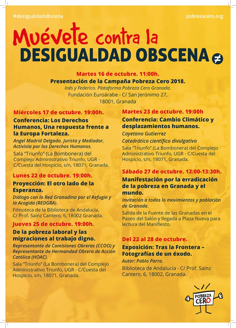 50 organizaciones de Granada te ofrecen una Campaña Pobreza Cero 2018 con un programa centrado en los desplazamientos humanos