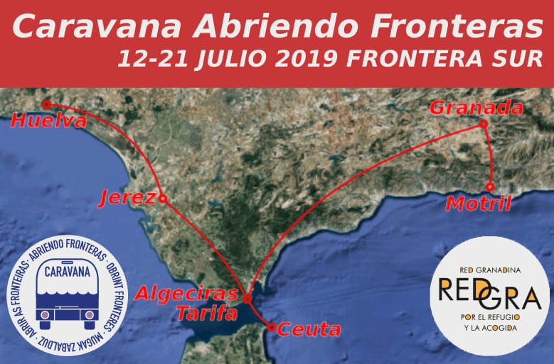 El viernes 12 de julio de 2019, la Caravana Abriendo Fronteras partirá desde diversos lugares del Estado Español y viajará durante nueve días a la Frontera Sur de Europa pasando por Granada, Motril, Tarifa, Ceuta, Algeciras, Jerez, Sevilla, Lepe y la comarca de la huerta onubense.
